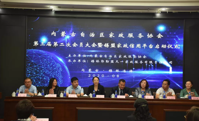 2020年8月14日,內(nèi)蒙古自治區(qū)家政服務(wù)協(xié)會第三屆第二次會員大會暨錫盟家政信用平臺啟動儀式在錫林浩特市成功召開!自治區(qū)婦聯(lián)家政服務(wù)指導(dǎo)中心莎娜主任,自治區(qū)發(fā)改委社會發(fā)展處徐大海處長,自治區(qū)商務(wù)廳服貿(mào)處張冠女處長,錫林郭勒盟有關(guān)部門領(lǐng)導(dǎo),內(nèi)蒙古家政協(xié)會會長李冬梅及全區(qū)12個盟市的會員代表共70余人參加會議。