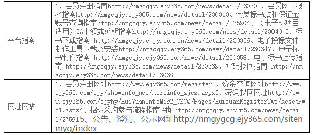 | 附件:設(shè)備清單 (2)投標(biāo)人資格要求 本次招標(biāo)要求投標(biāo)人須具備以下資質(zhì),人員、設(shè)備、資金等方面具有相應(yīng)的能力: ①須在工商行政管理部門辦理登記注冊(具有有效營業(yè)執(zhí)照); ②所供貨物均須提供產(chǎn)品合格證,電器類產(chǎn)品須提供“3C”認(rèn)證證書。 ③所有資質(zhì)文件、報(bào)告等真實(shí)有效,不得出現(xiàn)偽造、涂改、借用等情形。 ④履行合同所必需的設(shè)備和專業(yè)技術(shù)能力及專業(yè)技術(shù)人員; ⑤投標(biāo)設(shè)備必須滿足招標(biāo)人的設(shè)備參數(shù)要求,需要提供投標(biāo)設(shè)備型號品牌、各模塊性能參數(shù)、尺寸等材料和設(shè)備正面、側(cè)面、背面、平視俯視等角度彩照; ⑥具有良好的銀行資信、商業(yè)信譽(yù)和履行合同的能力,提供財(cái)務(wù)報(bào)告或銀行資信證明; ⑦在最近三年內(nèi)沒有騙取中標(biāo)和嚴(yán)重違約等問題,可提供承諾書或法人在“國家企業(yè)信用信息公示系統(tǒng)”和“中國裁判文書”網(wǎng)無不良記錄的打印頁; ⑧單位負(fù)責(zé)人為同一人或者存在直接控股、管理關(guān)系的不同供應(yīng)商,不得參加同一合同項(xiàng)下的采購活動;與采購人存在利害關(guān)系可能影響采購公正性的法人、其他組織,不得參加競標(biāo); ⑨不接受聯(lián)合體 (3)招標(biāo)文件的獲取 凡有意參加本項(xiàng)目的潛在投標(biāo)人,請于2020年8月26日9時(shí)至2020年9月2日17時(shí) (北京時(shí)間,下同),登錄內(nèi)蒙古產(chǎn)權(quán)交易市場網(wǎng)站“http://www.nmcqjy.com/”進(jìn)行會員注冊及辦理CA, CA申領(lǐng)方法及平臺操作指南請登錄(http://www.ejy365.com/newlogin)進(jìn)行學(xué)習(xí),在網(wǎng)上購買并下載招標(biāo)文件。 提示:CA僅用于投標(biāo)文件的加密和解密,CA申領(lǐng)在供應(yīng)商系統(tǒng)中即可完成,建議在開標(biāo)時(shí)間前10天以上制作投標(biāo)文件,請注意在領(lǐng)購招標(biāo)文件時(shí)間內(nèi)下載招標(biāo)文件,否則將無法參與本項(xiàng)目,CA售價(jià)250元/個(gè),售后不退。 本次項(xiàng)目的澄清/修改/變更/重新招標(biāo)公告會通過網(wǎng)站發(fā)布,請參加的投標(biāo)人及時(shí)登錄系統(tǒng)查看。 招標(biāo)文件(僅支持E交易下載領(lǐng)取)售價(jià)500元/標(biāo)段,售后不退。 賬戶名:內(nèi)蒙古產(chǎn)權(quán)交易中心有限責(zé)任公司 開戶行:中國銀行內(nèi)蒙古自治區(qū)分行營業(yè)部 行號:104191014056 賬號:以下載標(biāo)書系統(tǒng)彈出通知信息為準(zhǔn) 串標(biāo)行為認(rèn)定:標(biāo)書款和保證金的子帳號為隨機(jī)生成,參加同一項(xiàng)目的多家供應(yīng)商的標(biāo)書款或保證金匯入同一子賬號,視為串標(biāo)行為。 (4)投標(biāo)文件的遞交 投標(biāo)文件遞交的截止時(shí)間(投標(biāo)截止時(shí)間,下同)為2020年9月9日9時(shí)30分,投標(biāo)人應(yīng)在截止時(shí)間前通過內(nèi)蒙古產(chǎn)權(quán)交易中心電子(E交易平臺)招標(biāo)投標(biāo)交易平臺遞交電子投標(biāo)文件。 注:逾期送達(dá)的投標(biāo)文件,電子招標(biāo)投標(biāo)交易平臺將予以拒收。采用遠(yuǎn)程電子開標(biāo),投標(biāo)人無須到達(dá)開標(biāo)現(xiàn)場,可遠(yuǎn)程使用CA解密。 (5)付款方式 協(xié)議簽訂之日起5個(gè)工作日內(nèi),我方向供應(yīng)商支付貨款總金額的45%作為定金,并于到貨5個(gè)工作日內(nèi),供應(yīng)商向我方提供全額形式增值稅普通發(fā)票,再付50%貨款,剩余5%貨款作為質(zhì)保金,如無質(zhì)量問題1年后付清。 3.聯(lián)系方式 采購人名稱:內(nèi)蒙古烏蘭美健康服務(wù)集團(tuán)有限公司 聯(lián) 系 人:姚佳秀 聯(lián)系電話:17604742599 內(nèi)蒙古產(chǎn)權(quán)交易中心有限責(zé)任公司 地址:內(nèi)蒙古呼和浩特市賽罕區(qū)阿吉泰路3號 聯(lián) 系 人: 楊艷 聯(lián)系電話: 18586095937 郵箱:nmcqcg@163.com 技術(shù)支持電話:0471-3473040(報(bào)名、標(biāo)書下載上傳等)/0471-3473016(CA申請) |