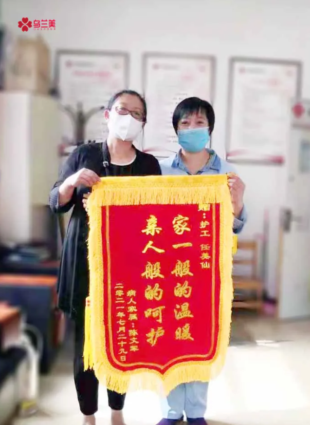 “我就是一個普通的農(nóng)民,沒有什么特殊的經(jīng)歷,但自從做了護(hù)工之后對我生活確實(shí)有很大的變化——增加了家庭經(jīng)濟(jì)收入來源。通過將近一年在醫(yī)院陪護(hù)病人的經(jīng)歷,讓我見識到了生命的堅(jiān)強(qiáng)和脆弱,也讓我認(rèn)識到生命的珍貴!”獲得錦旗的她略顯激動的說:“感謝烏蘭美健康集團(tuán)為我們這些沒有一技之長的人提供就業(yè)平臺,也感謝所有在工作中幫助過我的人?,F(xiàn)在,我可以將所學(xué)到的知識幫助到更多需要幫助的人。”